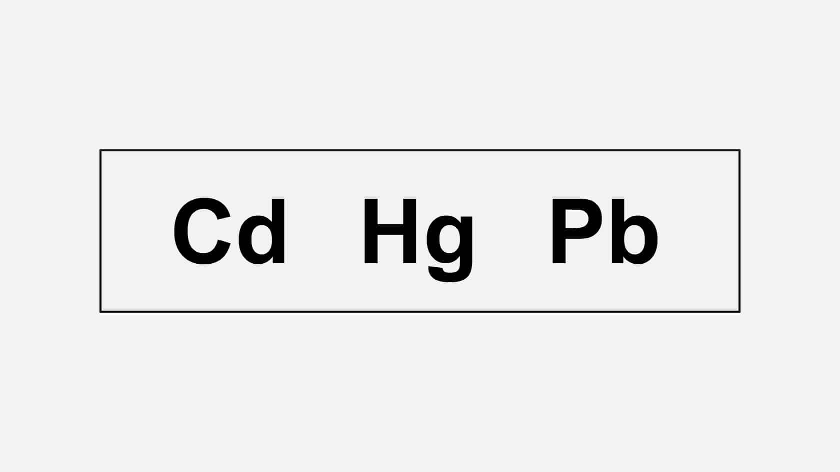 Kemiska symboler (t.ex. Pb, Cd, Hg)